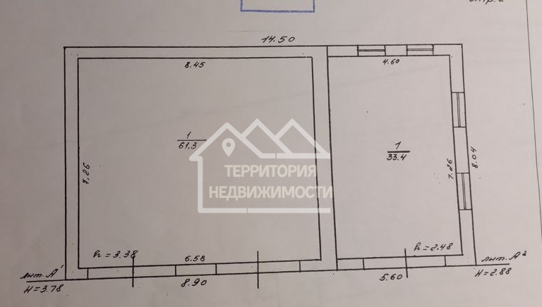 - Ворота 2 шт в помещении 61.3 кв.м.