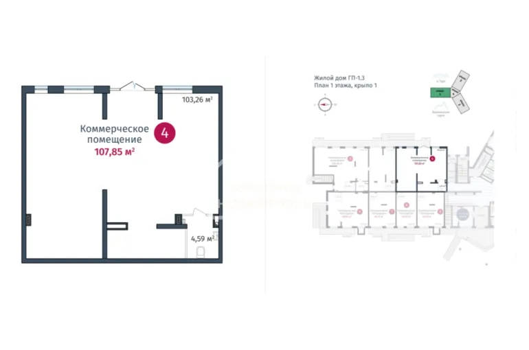 Торговое помещение 107.85 кв.м. в ЖК "DOK"